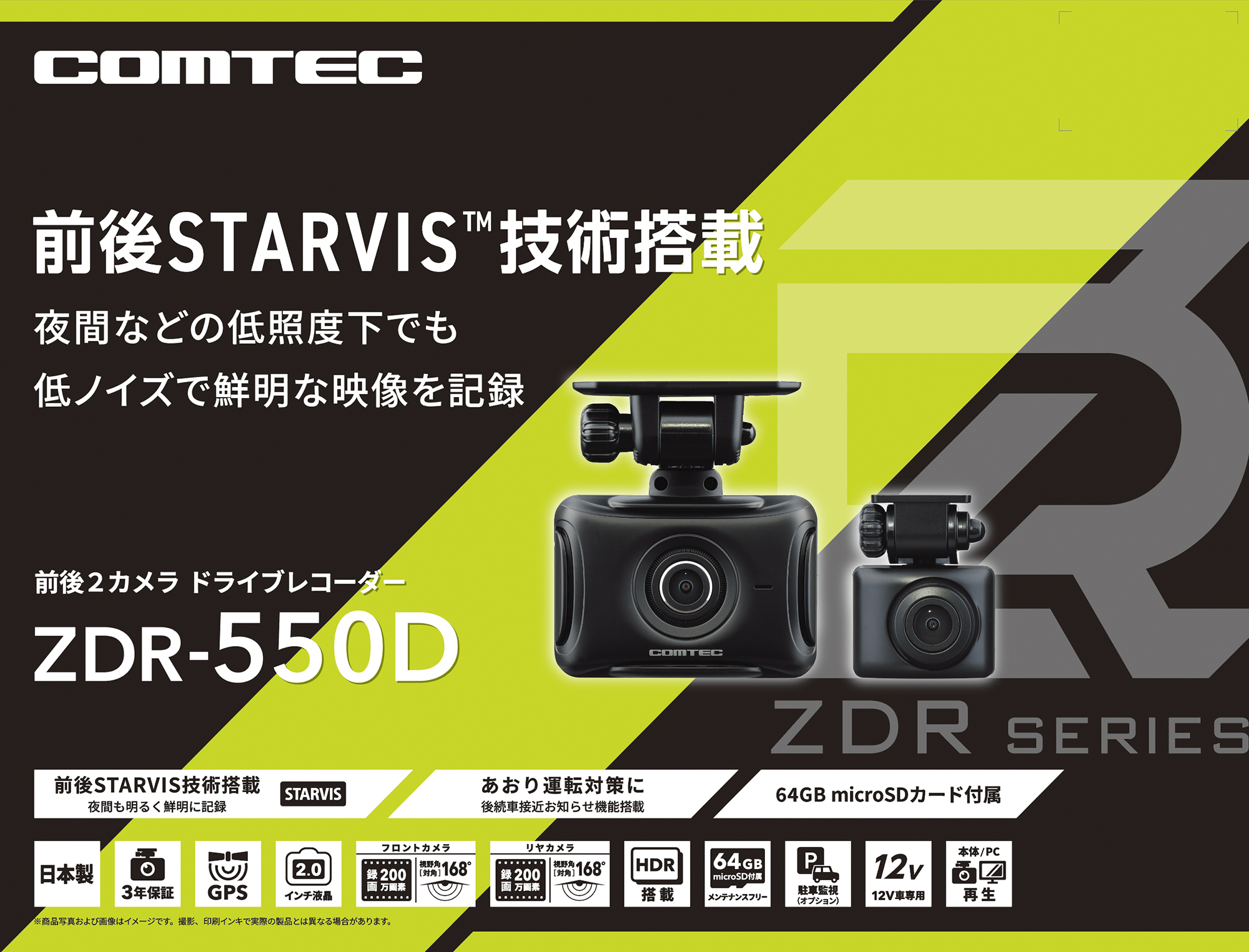 フロントカメラ、リヤカメラともにSTARVIS™技術搭載でノイズの少ない鮮明で美しい映像を撮影できます。