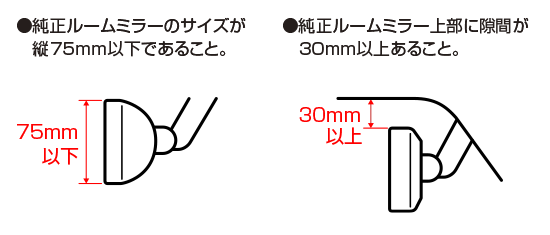 ●自動防眩ミラーやデジタルインナーミラー、ETC内蔵型などの純正ルームミラー装着車での使用はできません。