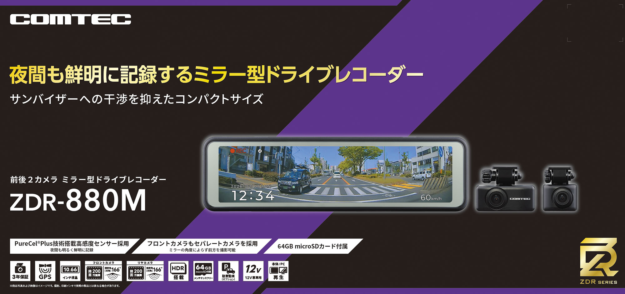 ドライブレコーダーZDR-880M+駐車監視コードCDOP-01Pセット